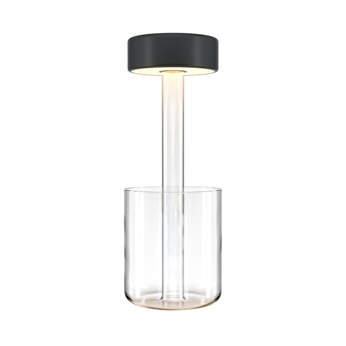 Портативный настольный светильник. Результат творческой коллаборации искусственного интелекта и предметного дизайнера. Два варанта корпуса светильника: с металлической тонкой ножкой на плоском круглом основании; со стеклянным основанием с интегрированным в него вазой. Плафон снимается с основания для удобного ухода за стеклянными элементами и подзарядки аккумулятора, расположенного в плафоне. Два варианта цвета стеклянных моделей - прозрачный и серый. Плафоны с рассеивателем из акрила в 3х цветах: черный, золотой, белый. Удобный сенсорный выключатель вверху плафона. Micro USB разъем для подзарядки скрыт в нижней части плафона. LED-источник света. Регулируемая цветовая температура от 2200К до 4000К.