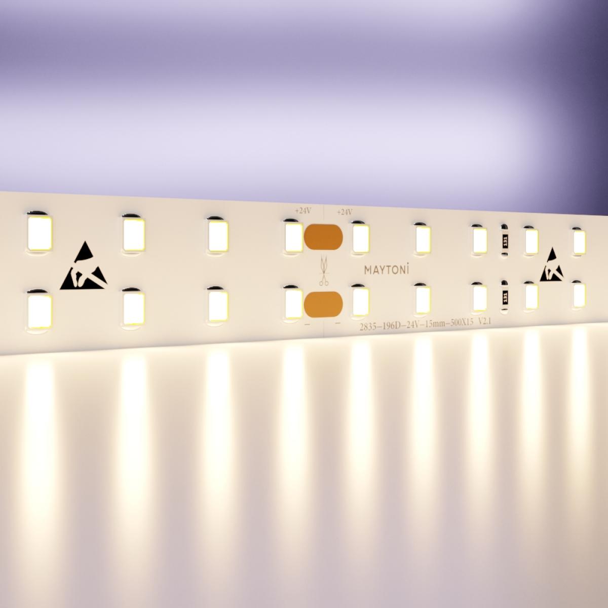 Светодиодная лента – современный и популярный источник освещения. SMD-светодиоды потребляют мало электроэнергии (в 8 раз меньше, чем лампы накаливания), при этом обладают высокой светоотдачей и минимальным нагревом. С их помощью можно организовать как декоративную подсветку, так и полноценное освещение в квартире и доме. Компания Maytoni предлагает широкий выбор светодиодных лент на 12В и 24В. Все необходимые комплектующие – блоки питания, контроллеры, профиль и коннекторы – также представлены в ассортименте.